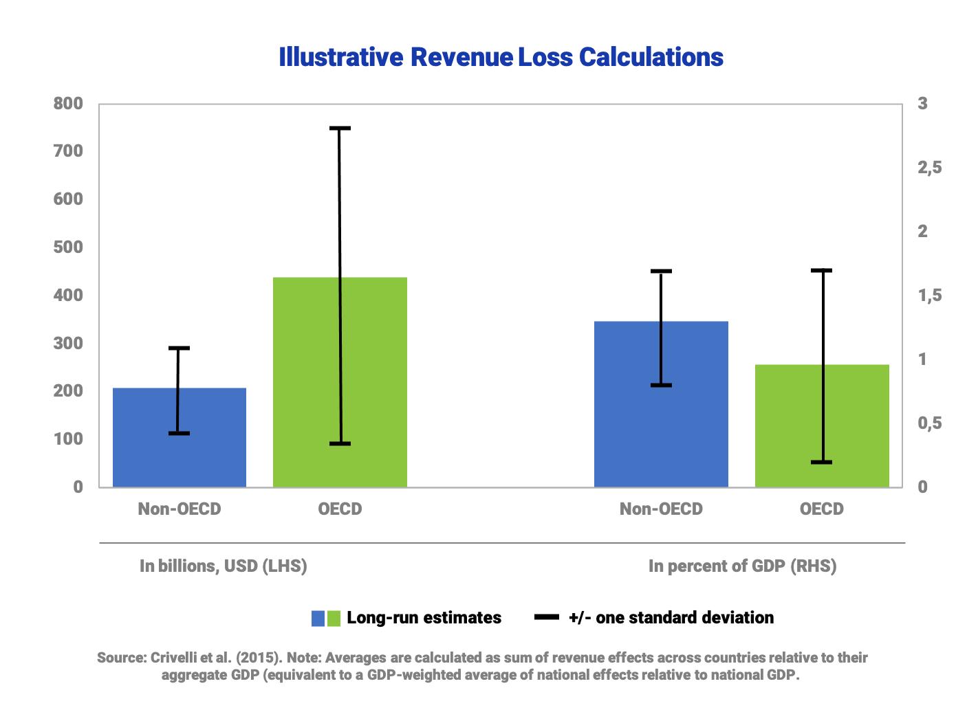 Arguing that base spillovers may be caused by real capital flows but also by profit shifting, they show that changes in the CIT rates of tax havens have a strong negative effect on corporate tax base which they attribute to profit shifting activities. The authors find that non-OECD countries are affected by base spillovers to a similar extent as OECD countries or even more. However, spillover channels differ between the two: while real capital flows seem to dominate for OECD countries, profit shifting seems to dominate the spillover effects for the non-OECD countries. In terms of estimated tax revenue losses, OECD countries lose larger absolute amounts but developing countries seem more severely harmed relatively to GDP. In addition, Crivelli et al. find that countries respond to tax rate reductions abroad by cutting their own tax rate which the authors term as “strategical spillovers”. They show that this effect is particularly strong among OECD members.